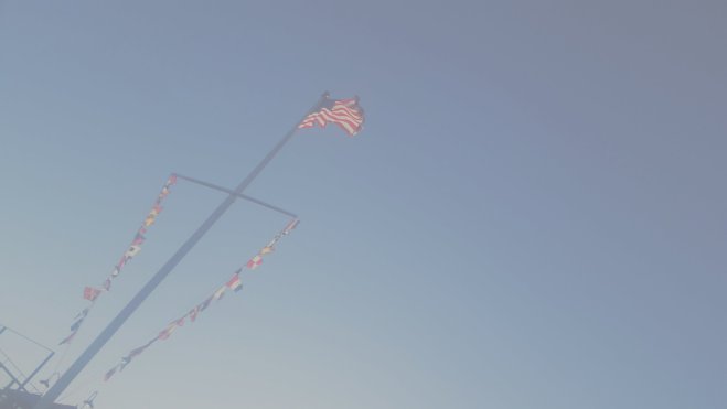 American flag waves at